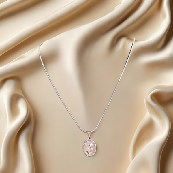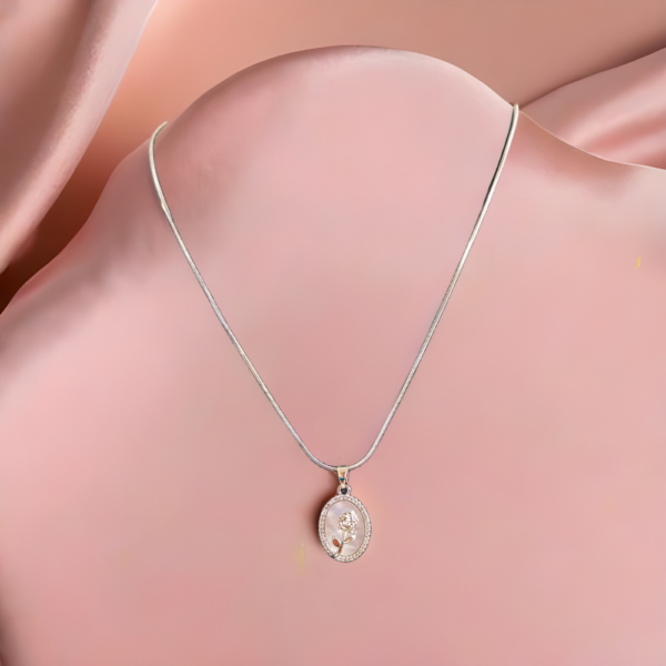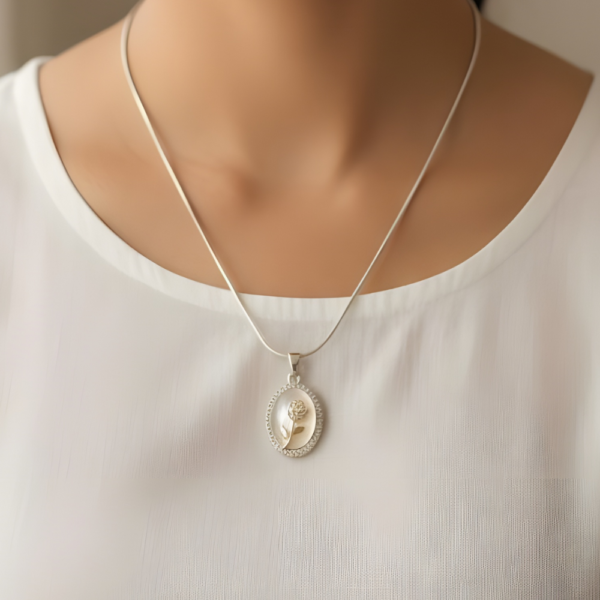 Stylish silver-tone pendant necklace featuring an elegant rose motif — perfect for daily and occasion wear.